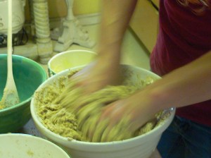 The best discovery of all is how good I feel when I share this bread. I’ve given start to some friends and classmates…now we have fun chatting about it, swapping ideas, and going off on tangents about other edible creatings. I’ve even sent some in the mail to distant friends and it warms my heart to think that they are keeping the process going.