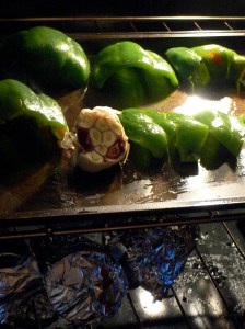 Batch cooking is your tool of insuring healthy food is around when you need it.  Basically I figure out what foods needed to be cooked soon to avoid spoilining and I whipped up enough foods to last a  few meals.  My approach is that if I’m turning on the oven, I’m going to make it worth my while, so on Saturday I baked sweet potatoes, roasted garlic and green peppers, and cooked some phyllo encrusted tilapia for dinner that night.  The whole process took me about 30 minutes (including making a big green salad to last that night and the next day), and I had meal components for 3 days.